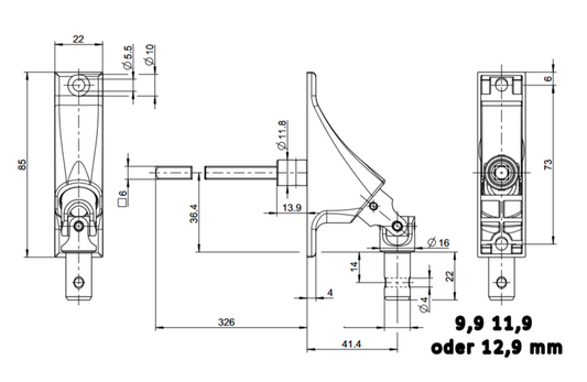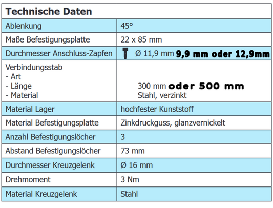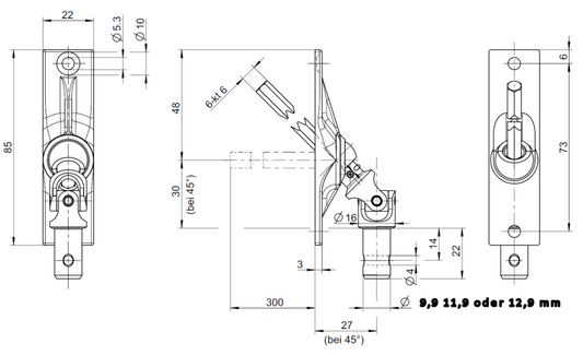 22x85mm 45 Grad Gelenklager 3 Loch-Ausführung