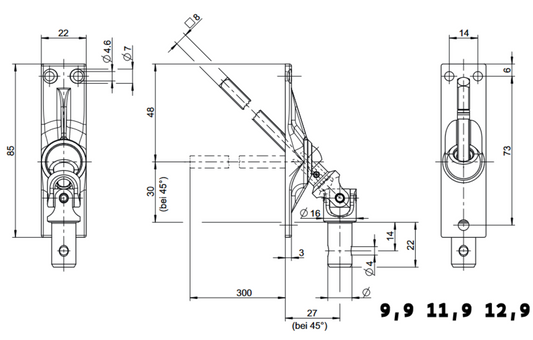 Fertige Kurbelstange mit 45° Gelenklager 22x85mm 3-Loch-Ausführung