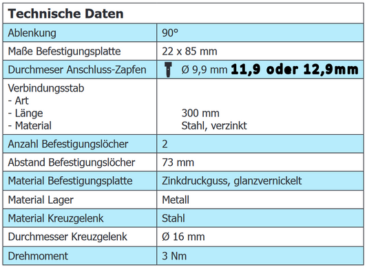 Fertige Rollladenkurbel / Jalousienkurbel Kurbelstange mit 45° Gelenklager 17x73mm