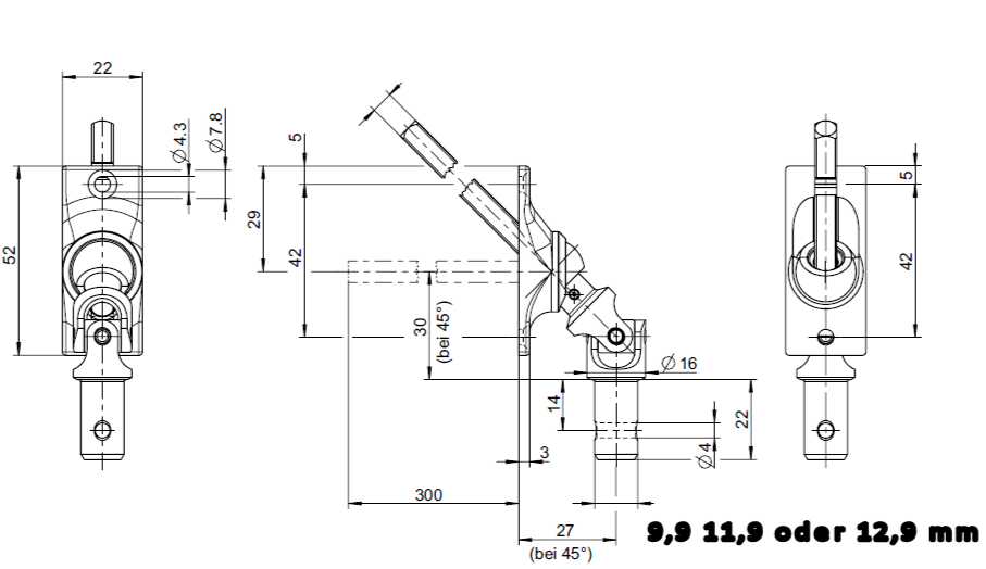 22x52mm 45 Grad Gelenklager 2-Loch Ausführung